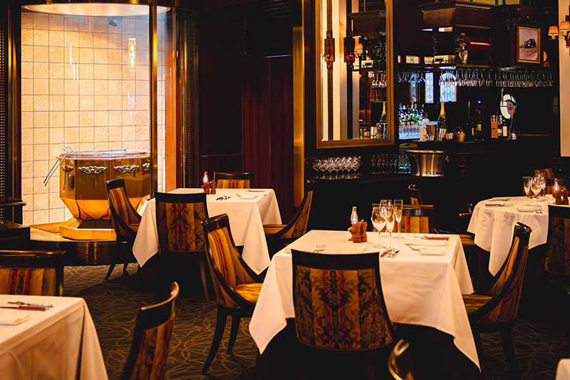 高い天井、数々の装飾品、ピアノやギターの生演奏など、