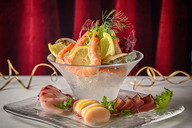 豪華な海の幸やシェフが厳選したフィレの熾火焼きステーキなどを